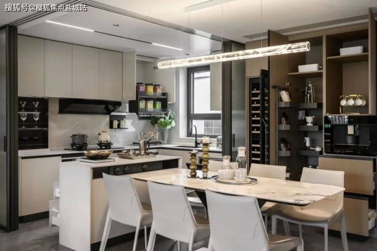 结合艺术玻璃移门,在提升空间灵动性的同时,也激发出餐厨空间生活的多样性。