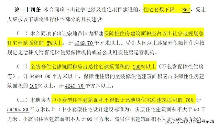 地块用地性质为普通商品房,容积率约2.5,限高80米,住宅套数下限867套,需配建5%以上保障性住房,中小套户型不得低于70%,全装修比例100%!
