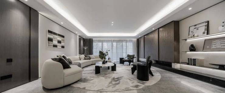 在空间打造上,我们关注“高低频”。客厅和双套房这些高频使用区,连通南向大花园,采光视野绝佳,充分放大体验感。阔达约60m²的客餐横厅,举步有天有地的院落场景,让全家尽享天伦之乐。像围绕客厅公卫的一圈走道,属低频区,我们便打造成“光之回廊”,方便孩子肆意跑动,升华空间功能。