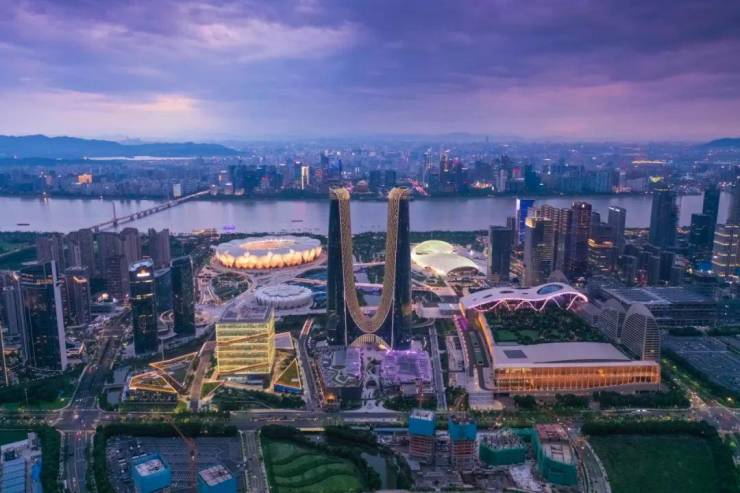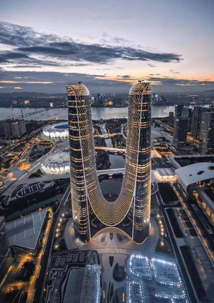 项目由两幢63层高的东、西双塔及商业裙房组成,包含5A甲级写字楼、浙江首家华尔道夫酒店及主题商业等多种业态,集金融、科技、文创、会展、酒店、商业等多功能于一体,创新实践杭州城市CAZ多功能活动中心的发展新模式。