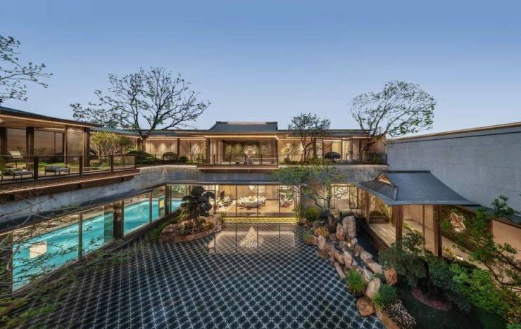 ②融入缩小版“西湖十景”,更具观赏性的禅境中式院落景观: