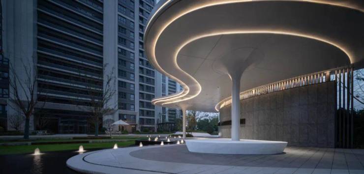 轴线作为空间的主脉络,串联起不同功能区域,形成清晰的空间秩序;而曲线型水景则以其柔美的形态,打破轴线的规整感,赋予空间灵动与活力。对景水景的设计以自然曲线为灵感,模拟溪流、湖泊的形态,营造出“步移景异”的视觉效果。水景绿岛点缀以绿植,形成人与自然的互动空间。