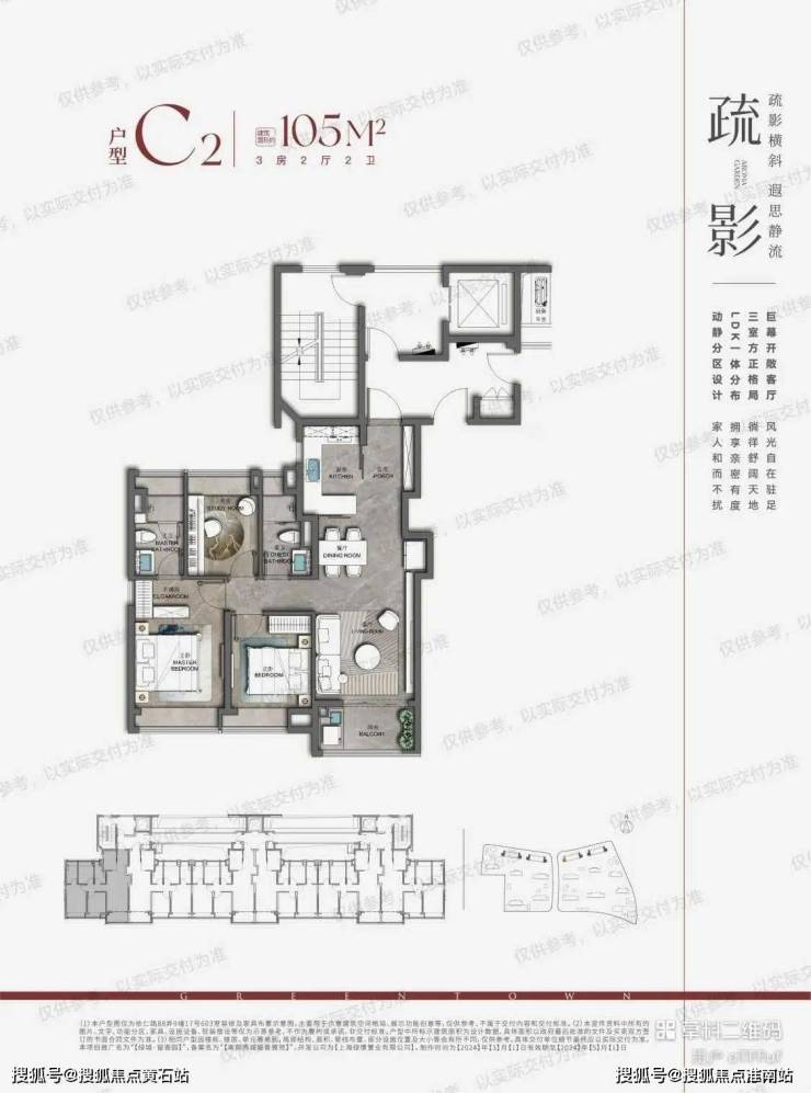 1、整案规划:「城与街」的进退有度从古猗园的文脉延续,到绿城桂花系列的迭代,基于绿城多年研发革新,主入口运用前厅后园的造园手法,临城纳水,融景造园,营造“出则繁华,入则静谧”之感。