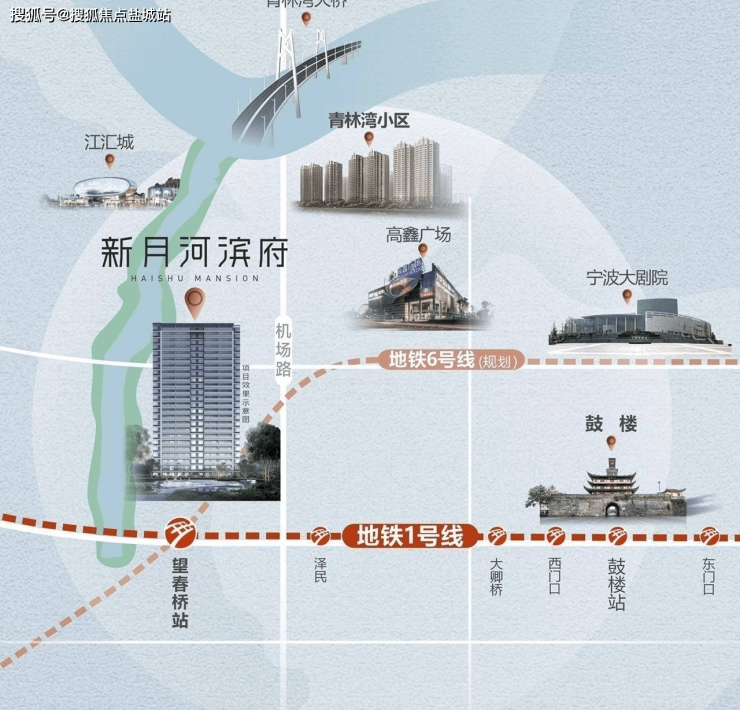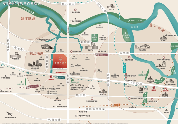 新月河滨坐落于宁波市海曙区通途路与机场路交汇处,毗邻轨道交通1号线望春桥站,是宁波姚江南岸一颗璀璨的明珠。此地不仅交通便利,更是海曙区未来发展的核心区域。