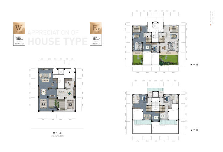 双叠排:建面约140㎡、145㎡(四室两厅三卫),建面约133㎡ (三室两厅三卫)