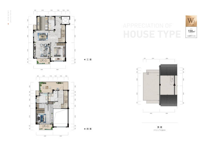4上叠赠送阁楼:以层高超过2.2米的空间部分)计算,最大赠送面积约40㎡