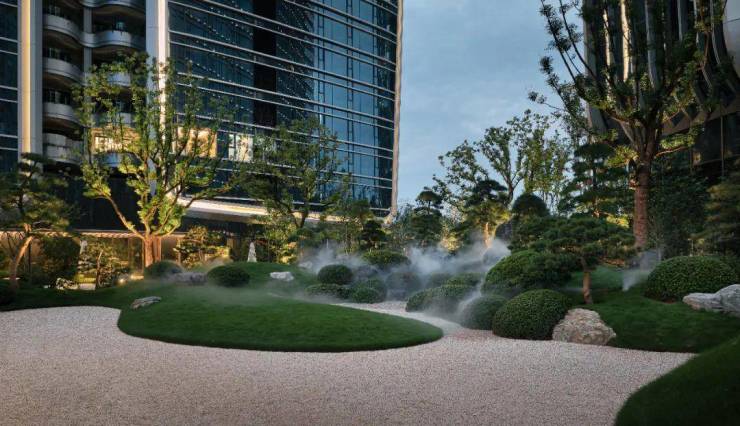 基于一线钱塘江景的优势,让景观与自然交互,以“潮”为核心元素去打造都会绿岛,同时依循地貌先天的河水资源,营构内外共水的滨水意趣,成为世界滨水生活的杭州表达;构建一座既独立又融于地标丛林的滨水绿岛,一片漂浮于繁华都会的城市谧境。