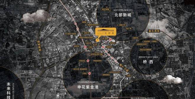 西侧1公里龙湖紫金天街、东侧1.5公里万达广场、Ins.park、北向3公里城北万象城(在建)、南向3公里大悦城、城西银泰城等多个繁华商圈。同时项目自身配套的商业街区2023年开业。