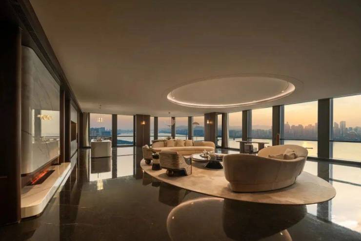 美国GP建筑事务所与德国HPP以良渚玉琮为灵感,在钛钢立面上雕刻出六和塔的斗拱韵律。室内设计大师琚宾更用太古青金奢石与手工金箔木饰面,打造出“流动的奢石博物馆”。这种将东方哲学编码进现代建筑的语言,与纽约432 Park Avenue的极简主义形成东西方对话,却同样遵循顶豪资产的黄金定律:大师签名即是未来50年的价值保单。