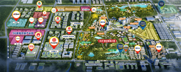 作为望城经开区打造千亿级智能终端产业集群的重要承载地,小镇聚焦智能终端、精密仪器、芯片研发、新材料等高新技术领域,已吸引比亚迪、德赛电池、大华科技等500强企业入驻。创智岛产业园二期已签约10家企业,预计年产值超70亿元。
