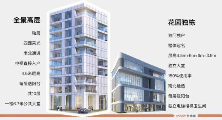 【面积】420-460㎡“空中独栋”,4000㎡大独栋,600-1500㎡一企一栋