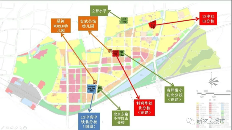 教育配套:新玄武拥有立贤小学、南师附小铁北分校(直属分校)、科利华铁北分校(直属分校)、北京东路小学红山分校、十三中红山分校,规划还有十三中高中分校,丰富的优质教育资源无疑令其他板块艳羡。