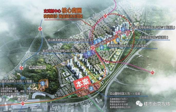 【玄武新中心】玄武宝龙城项目位于南京主城玄武区“红山新城”板块,红山新城占地面积约7.16平方公里,在新城规划过程中,产业被放在优先发展的位置。70%的载体全部用于商务楼宇、研发载体建设,住宅只占约30%的比重——总建设体量达430万㎡,包含210万㎡的商业综合体、140万㎡的中高端住宅和60万㎡的科技研发载体,以高端商务、科技研发、文旅体验等产业为主攻方向,将成为南京新城建设的示范区。