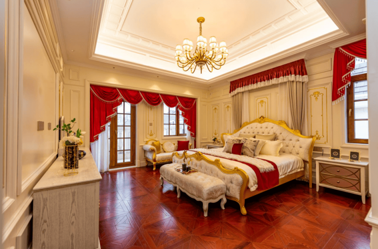 二楼豪华主卧套房,配有宽敞的衣帽间及奢阔明亮的主卫,南向瞰景露台揽尽庭院四季风光。