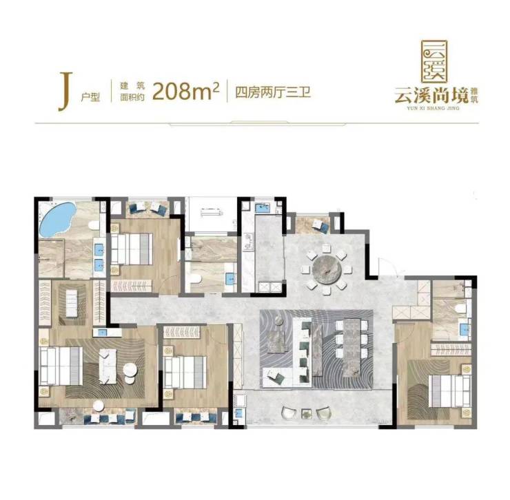 208平米4房2厅三卫户型----近20米超大面宽,菁英的生活排面