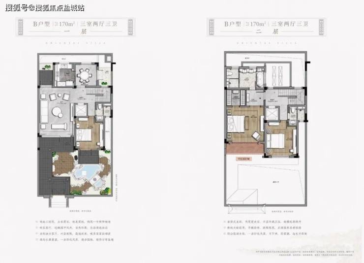 一般的合院,都会建成2+3,地下两层,地上三层。但是春江御园示范区却打造了2+2户型,建筑主体地下两层(其中一层为地下室夹层),地上两层。虽比一般合院少了一层,但却是十分合理的居住尺度。不论是建筑的美观度还是居住的体验感都是非常适宜的。