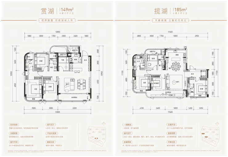 › 约149㎡4房2厅2卫户型&约185㎡4房2厅3卫户型
