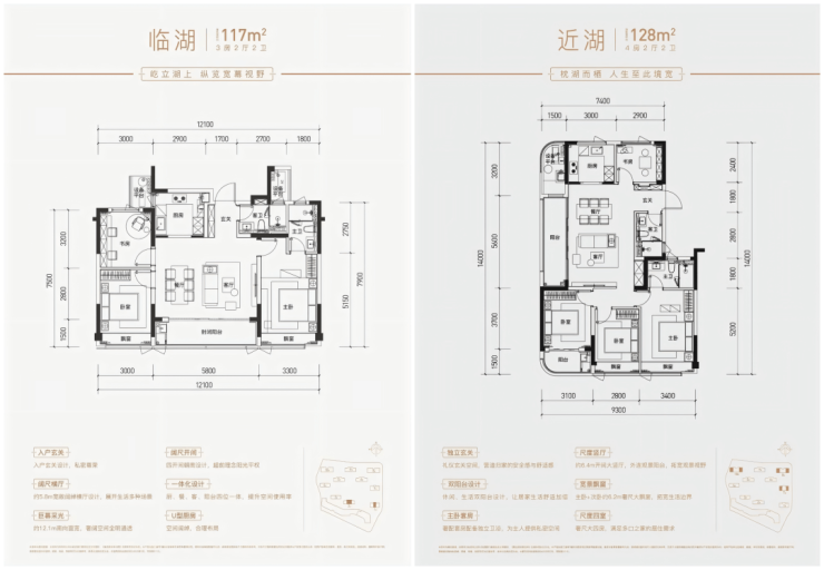 › 约117㎡3房2厅2卫户型&约128㎡4房2厅2卫户型