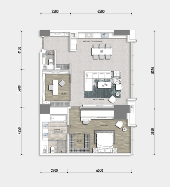 2、550大户型由国际顶级设计师凯莉赫本(代表作品:威廉王子婚房)打造