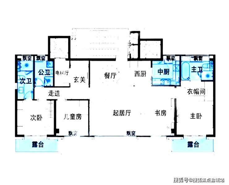 四层洋房户型:建面约170㎡