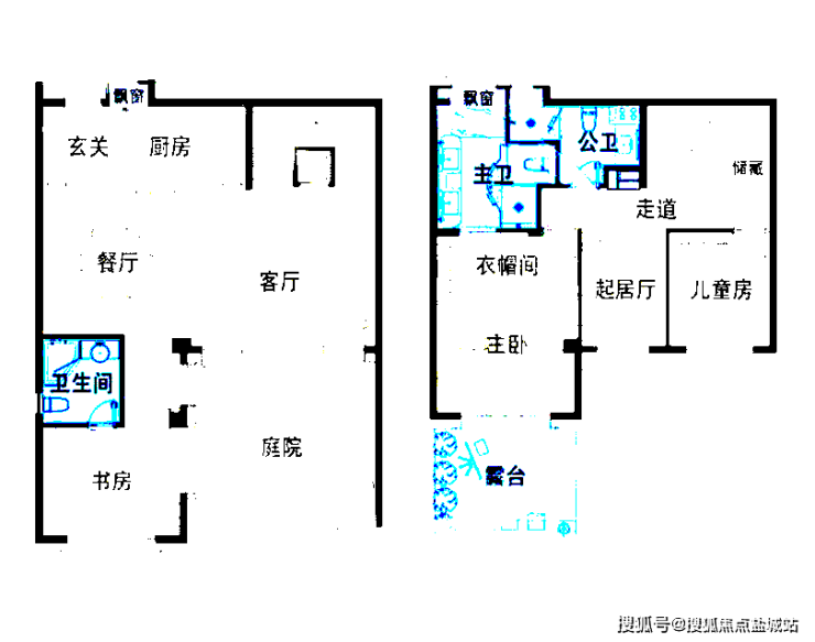 一二层叠拼户型:建面约170㎡
