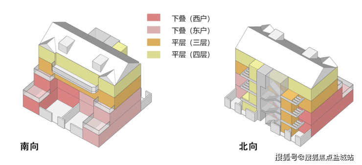 风貌叠加下叠则实现「垂直空间极致利用」, 罕见地做出 “露台+庭院+地下室” 的三重拓展空间,“有天有地有庭院”比肩联排产品。