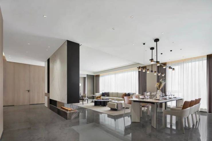 近100平米的客餐厅,是开 Party 的理想场所,亦可用来做沙龙、家庭轰趴、宴请宾客等,满足当下都市人的多种需求。
