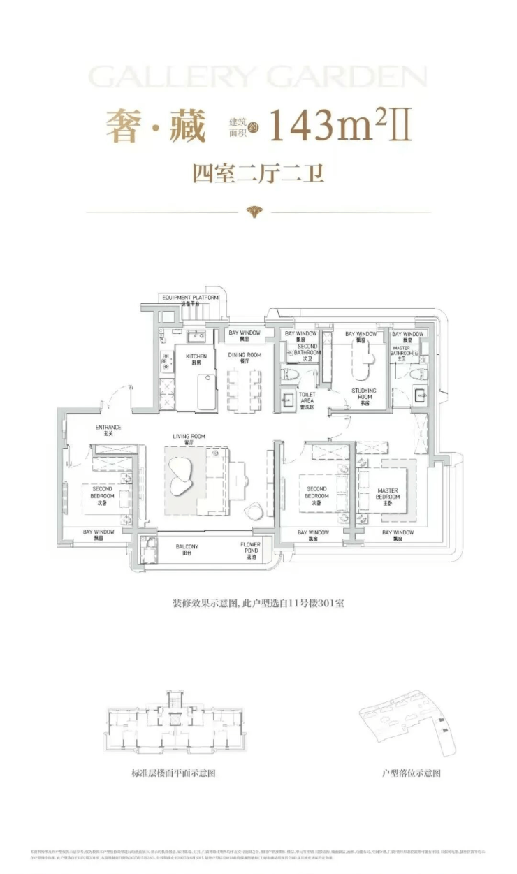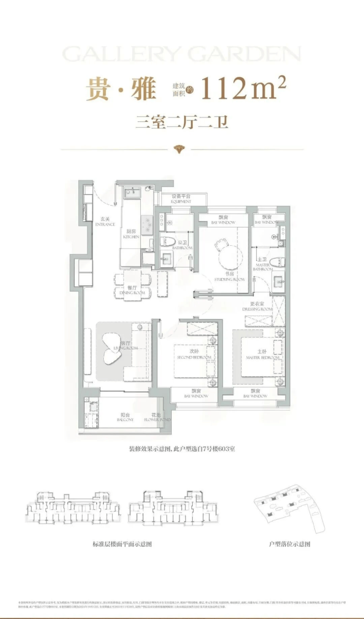 罕见七飘窗设置,主卧还是约270°转角飘窗,可多角度欣赏景观,同时大大增加室内使用面积,据悉七飘窗合计约12平米。