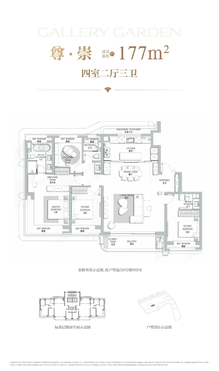 建面约177㎡户型是本批次的重点户型,总价约2300-2500万级,改善一步到位,后续再无!阔朗的四开间朝南设计+双套房设计,保证不同家庭成员起居的私密性。