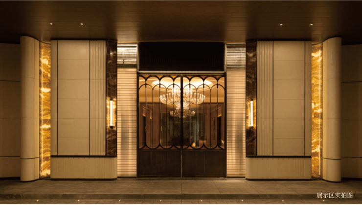 【海上·清和玺】空间采用奢材定制,将品质延续到每个细节中。门庭延街的外立面,以精工定制弧形贝金米黄大理石为主调,镶嵌典藏级老虎玉大理石,点缀古铜色现代海派艺术感灯器。整体呈现一种流转于百年海派的贵雅气质。