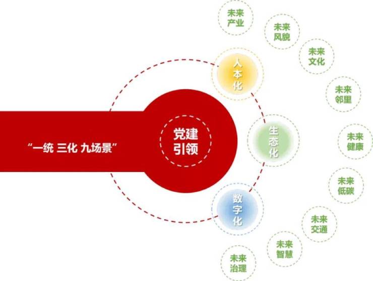 未来社区简单来说,就是“一统三化九场景”的建设,即坚持党建统领,以人本化、生态化、数字化为价值导向,以和睦共治、绿色集约、智慧共享为基本内涵,构建未来邻里、教育、健康、创业、建筑、交通、低碳、服务和治理九大场景,打造具有归属感、舒适感和未来感的新型城市功能单元。