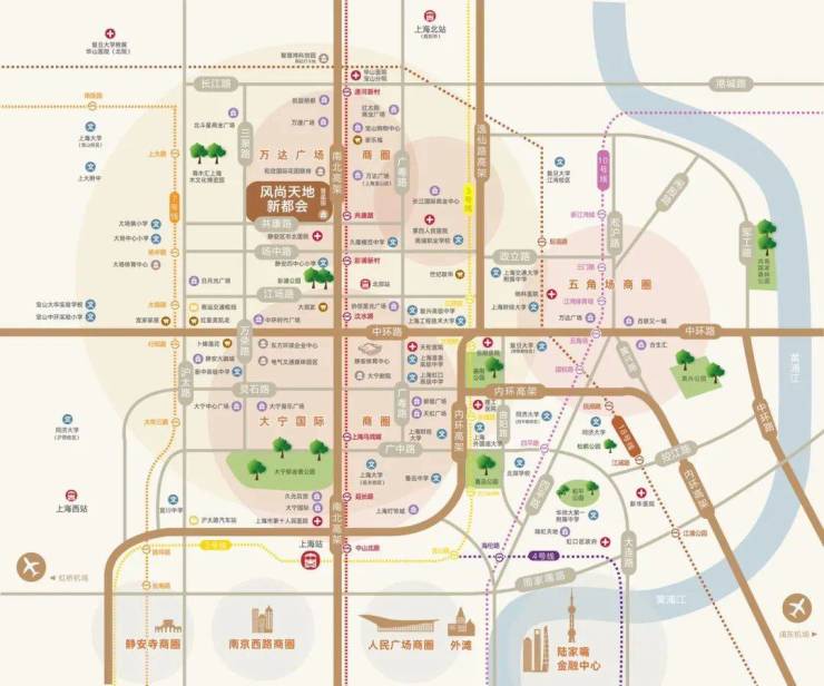 商业方面:南靠大宁商圈、久光百货、人民广场繁华闹市,东靠五角场商圈,近临万达、家乐福等商业巨头,以及永乐生活、俊力财富广场等,自拥5层精品底商,满足日常所需。