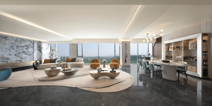 邱德光设计的样板间,将钱塘江潮涌化为床头皮革软包,80㎡南向横厅如IMAX巨幕般收纳城市天际线。客户在看过样板间后便表示:“看过映萃后,很难再接受传统户型——这里的每一扇窗都是一幅动态名画。”