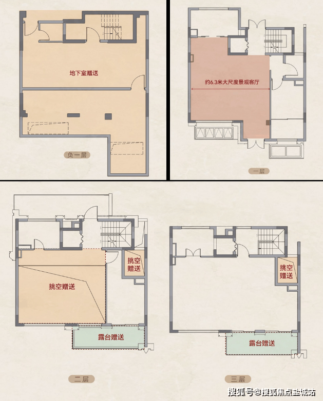 ④超值赠送,地下室+挑空+3阳台+4露台+花园,🉐使用面积400-450㎡;