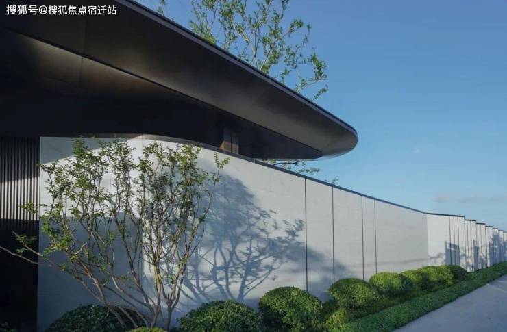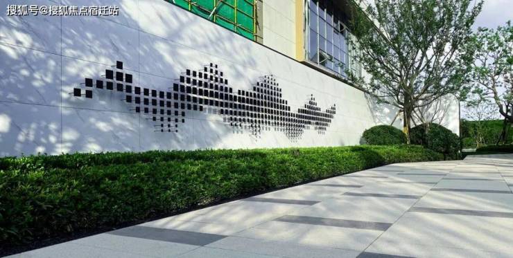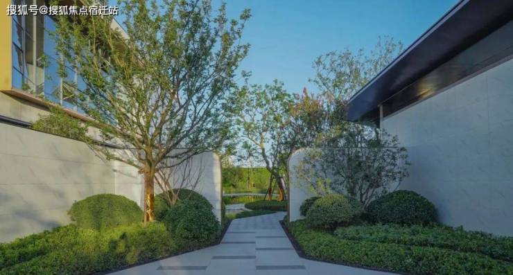 主入口采用简约大气的立面设计、极具现代感的线性流瀑以及精致利落的植物搭配,奠定了整个项目兼容东方诗意与西方艺术的清雅、至简的基调。