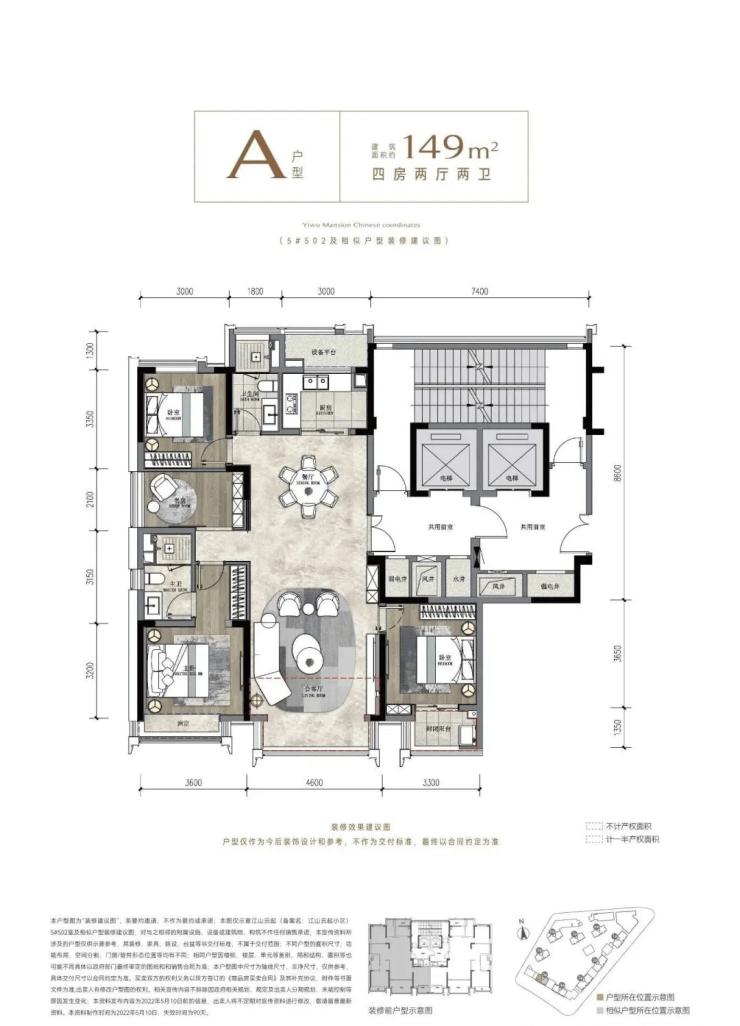 4、在售户型:149平 四室两厅两卫 一梯一户精装修交付