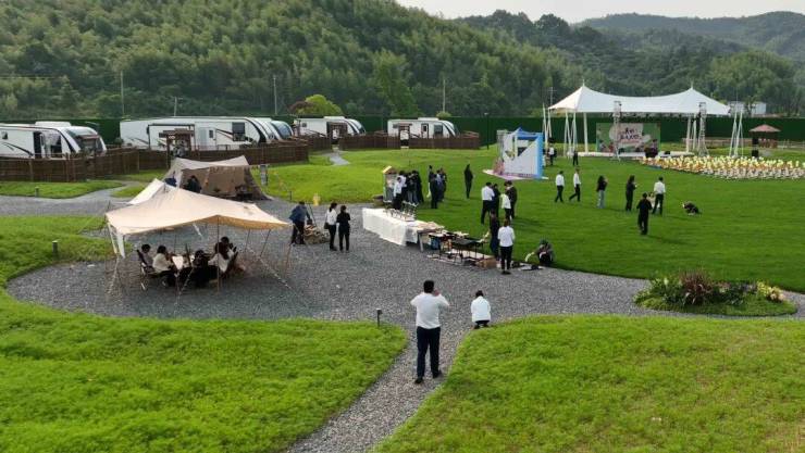 项目打造营地生活体验区“贰拾一营地”,通过房车、帐篷花径草坪打造精致露营区,提供舒适房车住宿体验。