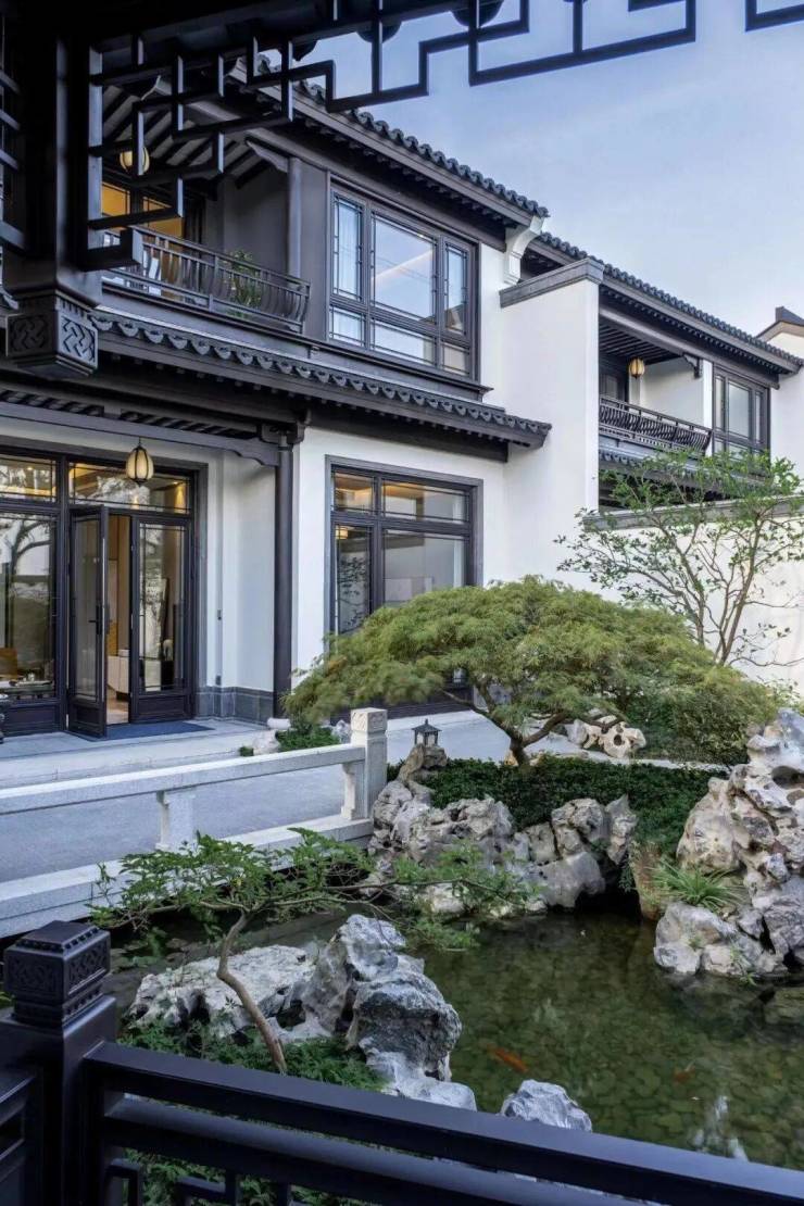 穿过典雅的壁柱序列、温暖自然的木色窗套与古典雕花栏板,叠砌双层及顶层摘星露台便在青瓦的掩映下浮现。