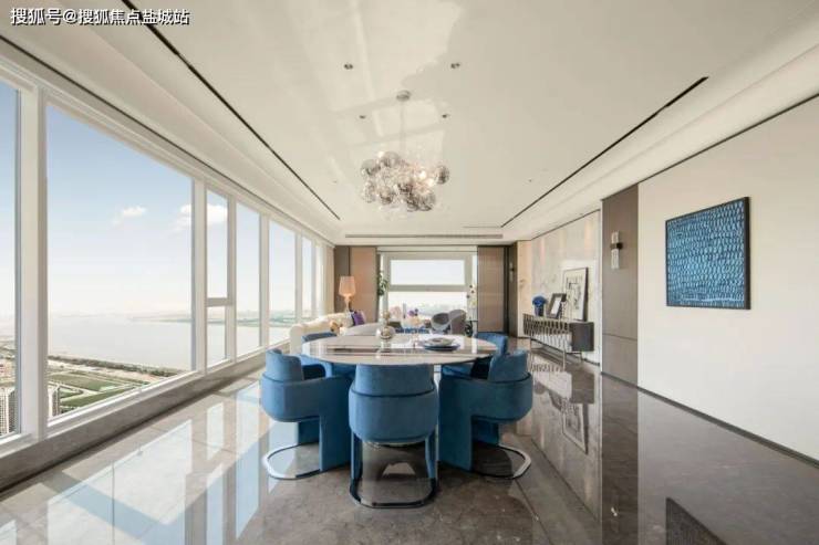 滨江·揽潮誉道以99席瞰江三百平,真正意义上的“奢侈品”。一共5幢大玻璃铝板高层,其中,东西朝向的2幢为自持商业、南北朝向的3幢为商业大户型。起步约310㎡、最大约440㎡,一共99套。虽然户数不算多,却自带约1000㎡会所,标配恒温泳池、健身房等设施。