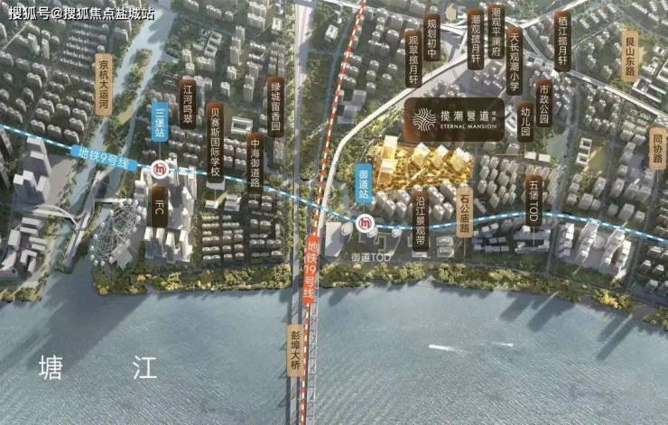 在IFC板块,一个江景大户型拔地而起——滨江·揽潮誉道。从揽潮誉道步行到IFC大约1500米,骑上小黄车差不多8分钟。当然更推荐的方式是地铁,下楼约100米乘地铁9号线坐1站,从三堡站直接进入IFC的地下层。