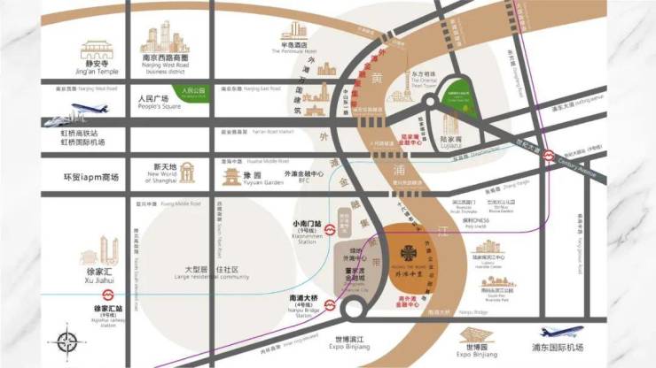 城隍庙豫园等上海核芯商圈约3公里。
