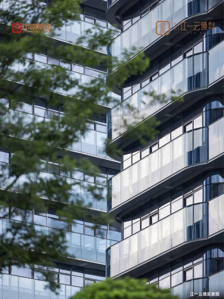中南·江一云境项目以“凌风知劲节,负雪见贞心”为设计意念,取“凌云松”为建筑形态设计意象。横向线条层层罗列,张弛萦绕;纵向曲线挺拔张扬,律动变幻,项目整体透亮不失绵密,素雅又兼大气,以极高的视觉辨识度与“国际滨”的地域调性完美融合,达成了同周边景观、城市业态的美妙平衡。