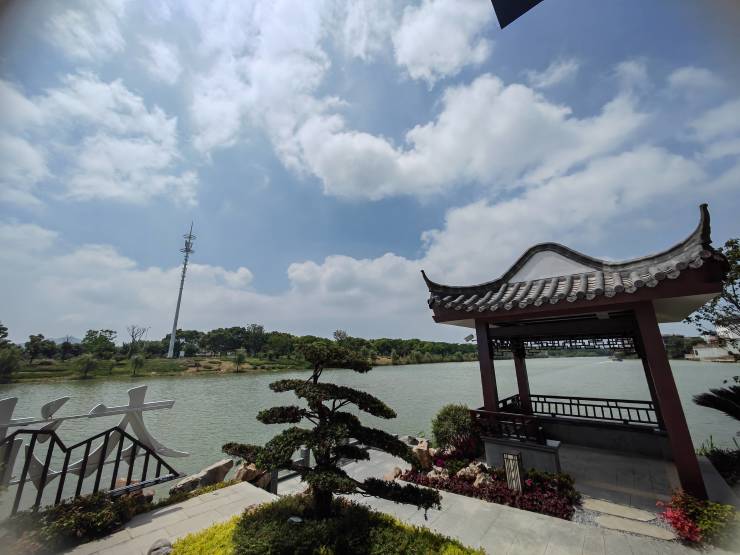 星空露台,开阔观湖视野,鸟语花香间,品茗观景揽日月