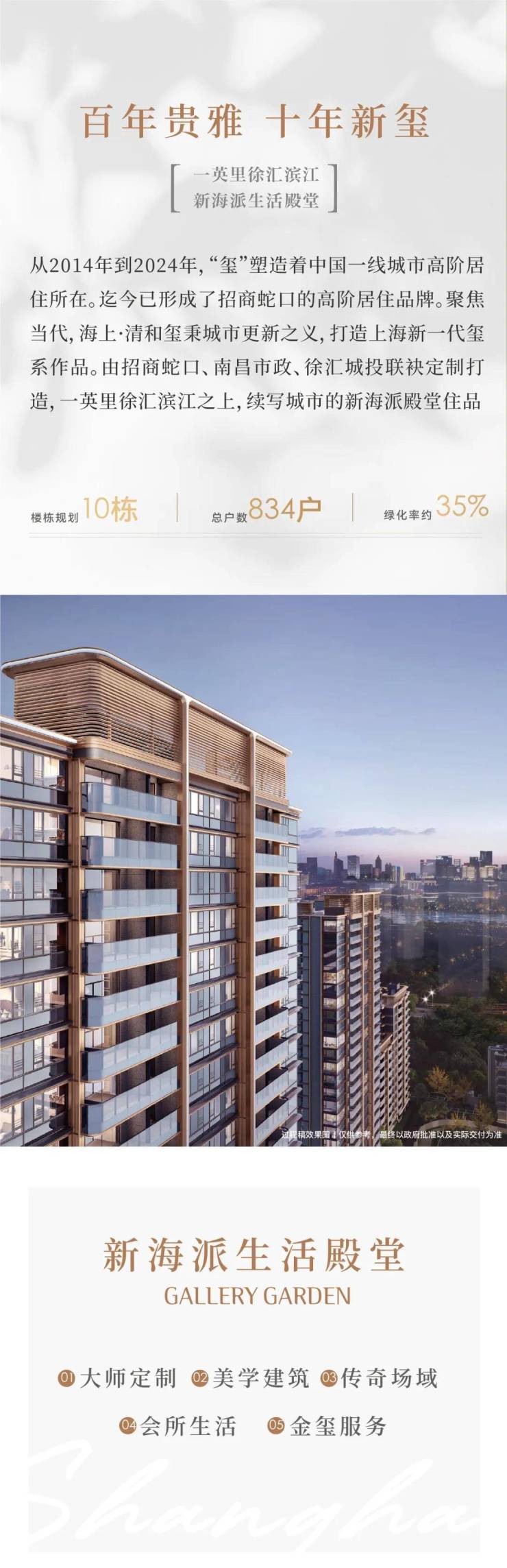 源自玺系过往十年的全国高阶营造经验,以更细微的人居需求洞察,为徐汇定制专属的贵雅质感。