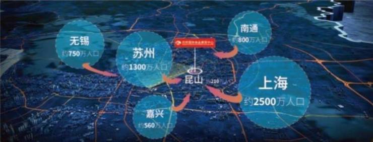 项目所在地“昆山市”GDP连续19年位居百强县(市)首位,花桥素有“江苏东大门、上海后花园”之称,全国百强镇综合实力排名第五,紧抓轨交“双11号线”在花桥无缝 衔接的重大机遇,做深“虹桥一花桥”双桥联动,打响“上海有虹桥、苏州有花桥”品牌,一小时经济圈辐射人口超5000万,为本项目提供广大消费客群。