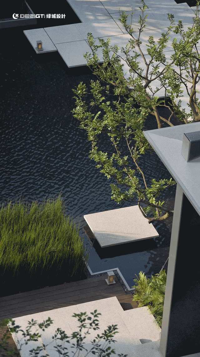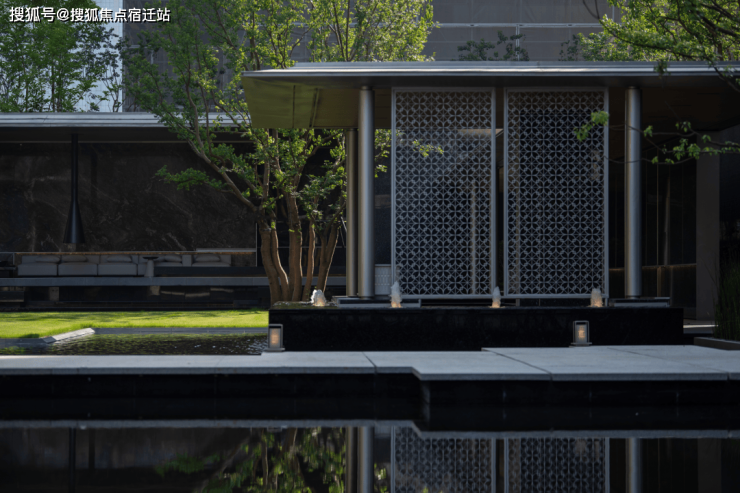 在景观设计中,水是调和人与环境的关键。绿城凤鸣云翠示范区,在归家前场融入水上林影,营造轻松自然的度假风格,实现室内外空间与视觉体验的动态融合。