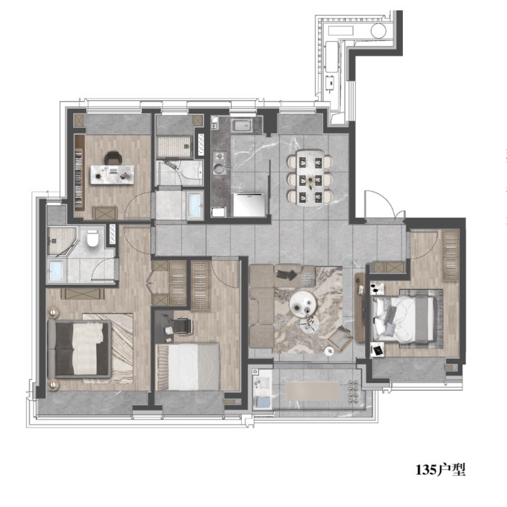 建面约135㎡4房2厅2卫户型图: