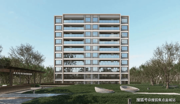 金属外框和横向线条的运用借鉴了苏州园林中传统的廊桥和拱廊设计,将元素引入外立面,营造连续流畅的空间感。线条与错落的布局相结合,形成苏州园林中庭院和景观之间的巧妙过渡,为住宅带来了内外空间的流畅互通。采用现代设计风格,立面简洁规则,以竖向线条划分体块关系,大面积大分割的玻璃使建筑整体轻盈通透,也创造良好的景观视野。细节上则力求精工细作,奢而不显。山墙面大面米白色铝板一体板,撑起立面整体的高级感,形成高级淡雅的立面风格。