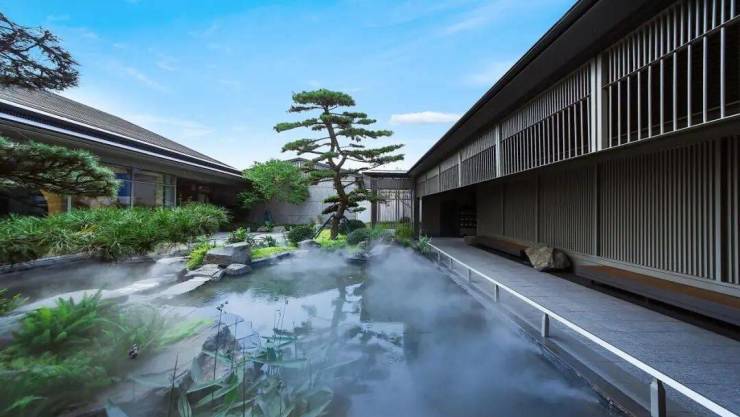 园内以三棵超20cm古松点睛,搭配五层立体植被,绿意盎然。直角风雨连廊贯通地库,晴雨无忧,步移景异。