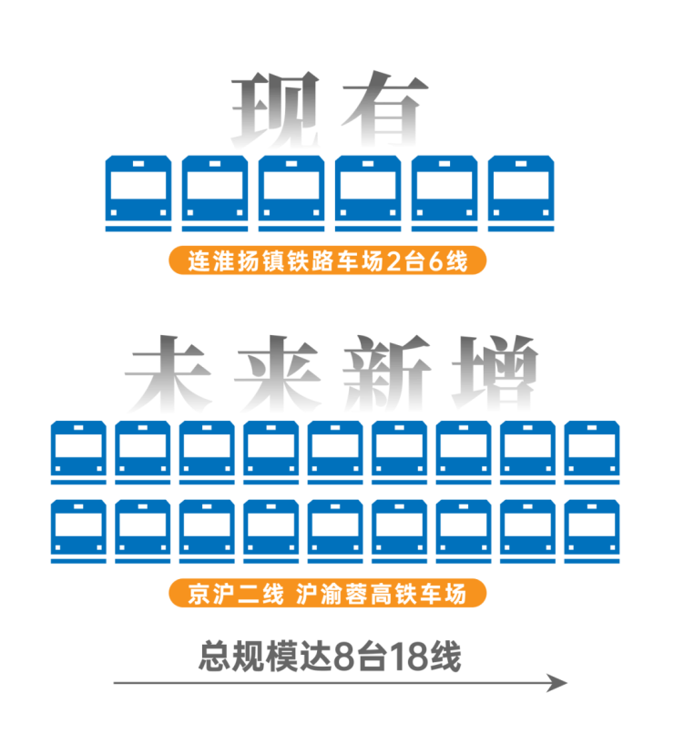 扬州东站不仅是当下的城市门户,更是未来的交通心脏。二期扩建工程稳步推进,未来将接轨京沪高铁二线、沪渝蓉高铁等多条国家干线,并于2027年前后形成“十字交叉”的枢纽格局,总规模由现有的2台6线增长为8台18线。
